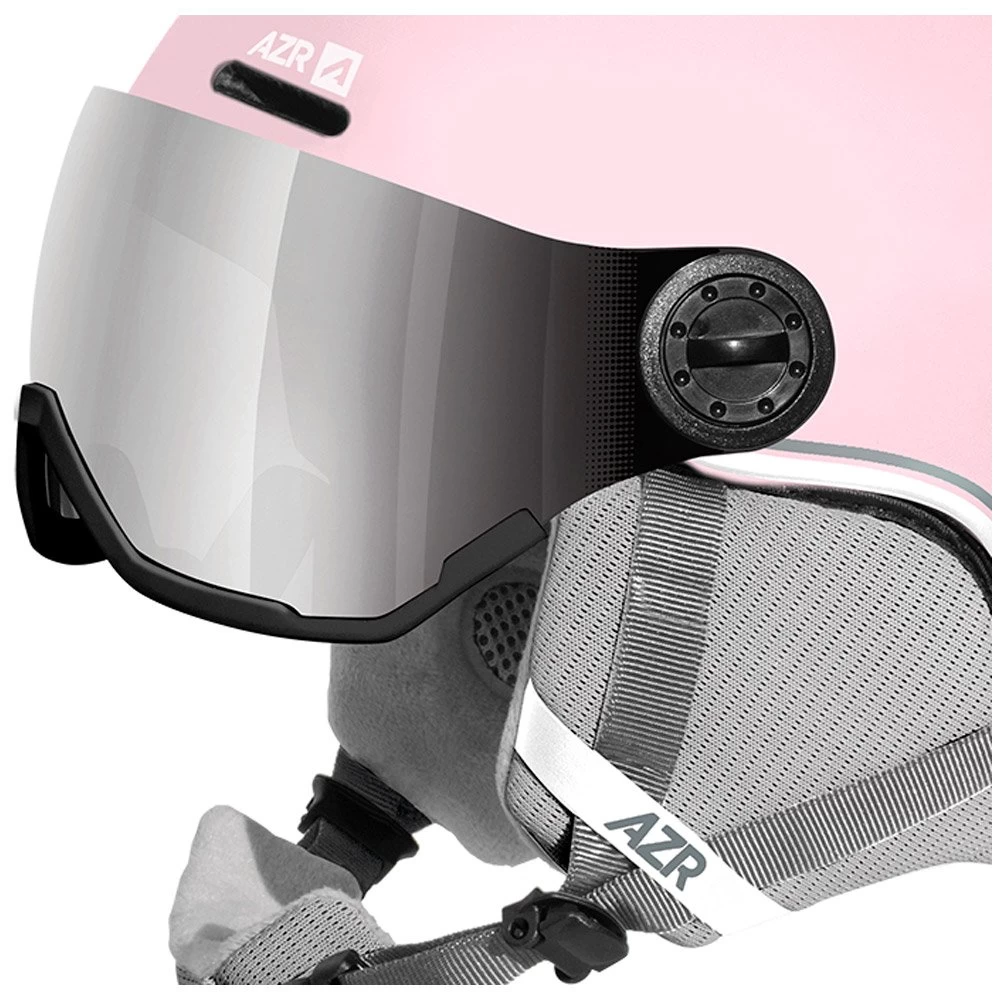 Le casque de ski AZR Nevada Visor est très pratique grâce à sa visière intégrée qui permet de se passer de votre masque. Doté d’une construction en In-Mold, sa coque en polycarbonate est légère et résistance aux chocs ce qui lui permet d’obtenir la certification CE EN 1077. La ventilation est permanente pour limiter la formation de buée sur la visière et la molette de réglage permet d’ajuster au mieux la taille. Enfin, on trouve également une doublure en velours amovible et lavable pour le garder en bon état au fil des années.