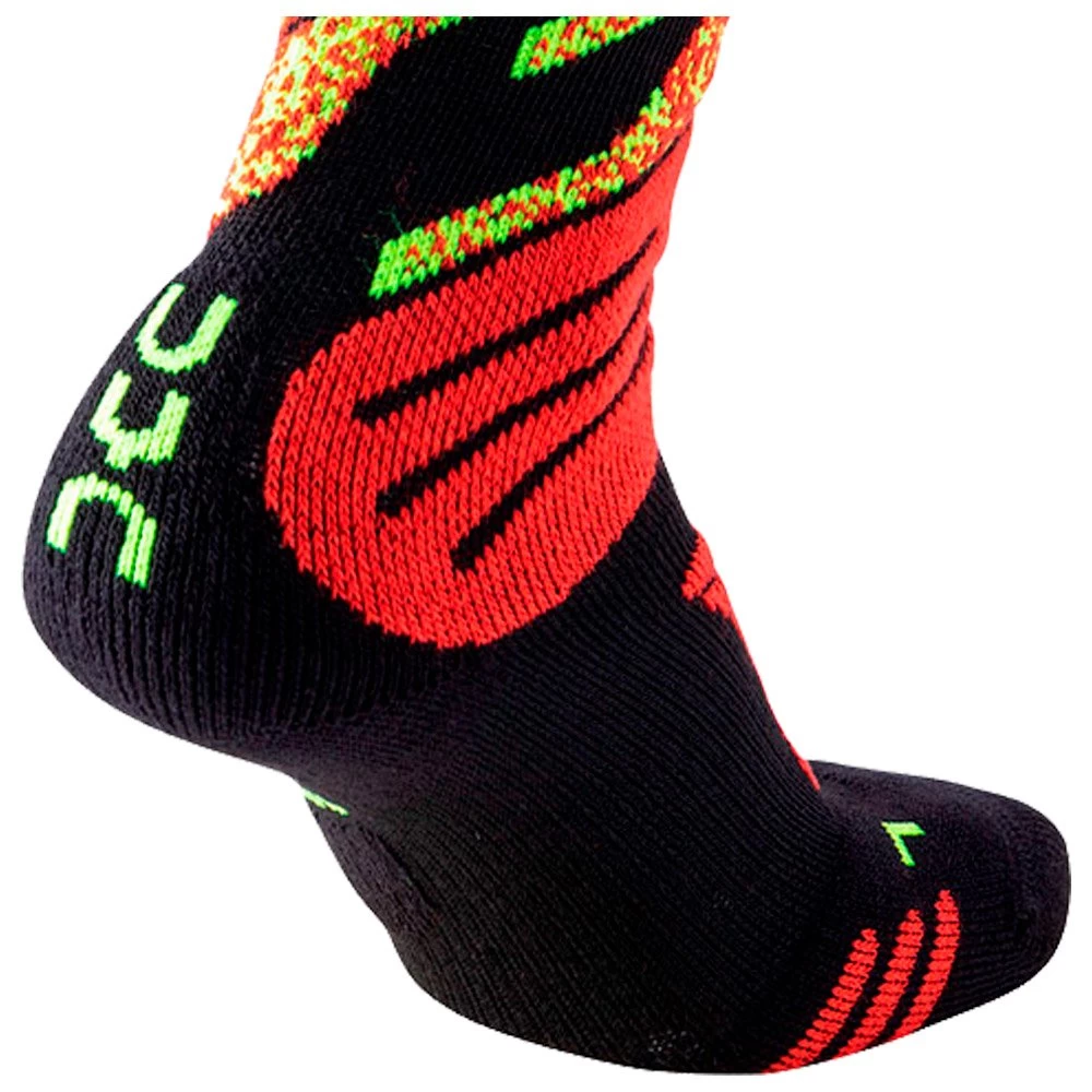 Les chaussettes de ski pour enfant Uyn Junior offrent un grand confort et un amorti efficace des chocs. La structure enveloppante épouse complètement le pied, les mollets, les chevilles ainsi que les tibias. Conçues en SofDry et en nanofibre Subermat, elles résistent à l’abrasion, assurent douceur au toucher, respirabilité et contribuent à garder vos pieds au sec.