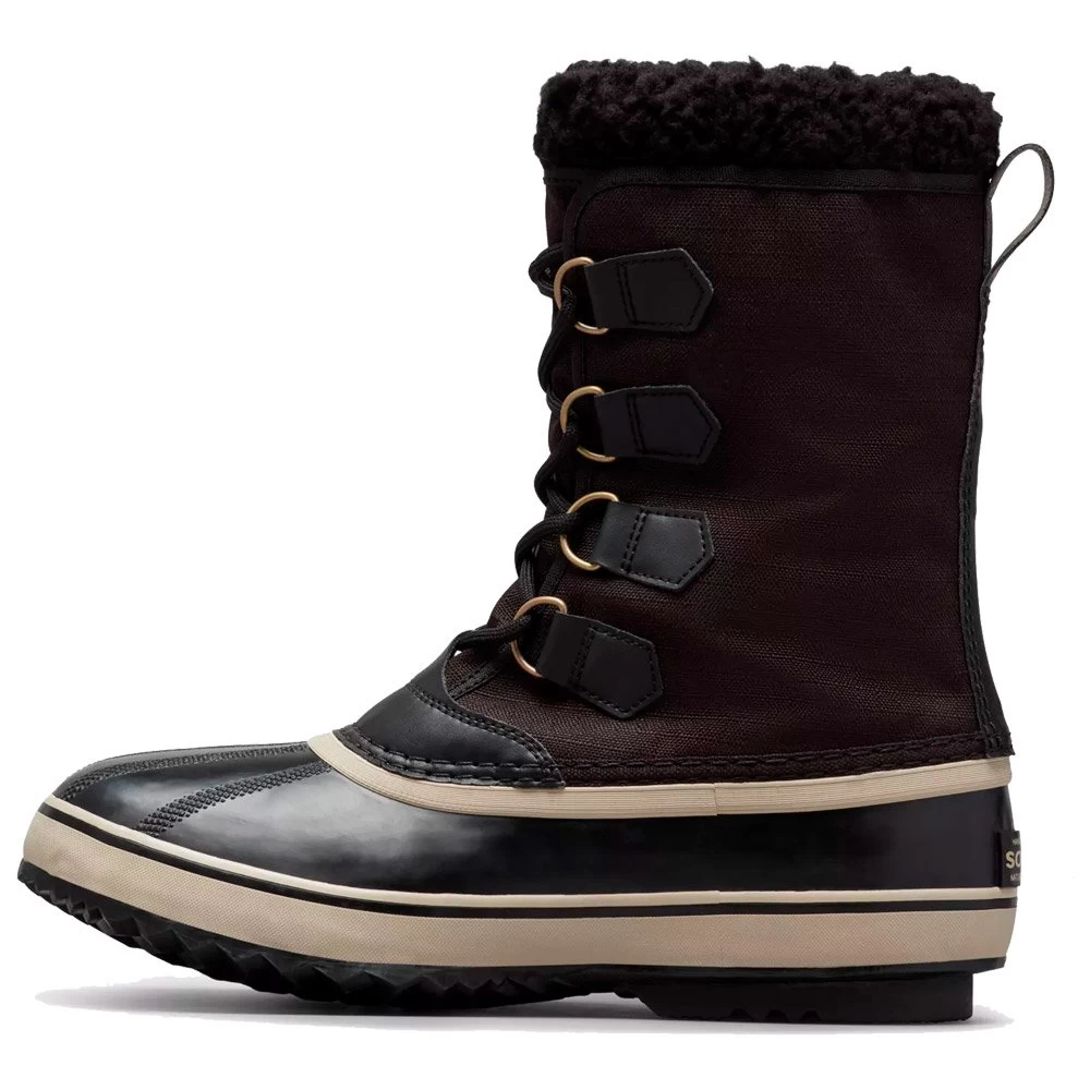 D’une grande efficacité, les après-ski Sorel 1964 Pac combinent confort et chaleur, le tout dans un style raffiné. Réputées pour leur robustesse, ces bottes grand froid bénéficient d’une tige en nylon imperméable et de coutures étanches. Pour assurer la meilleure isolation possible, elles sont équipées de chaussons amovibles et lavables en feutre recyclé avec revers pare-neige en polaire. Les semelles intercalaires intègrent un insert antigel en feutre contrecollé de 2,5 mm. Les semelles extérieures sont fabriquées artisanalement avec des sculptures en chevrons. Elles sont surmontées d’une coque imperméable en caoutchouc vulcanisé. Que vous arpentiez des chemins ou des trottoirs couverts de neiges, ces chaussures vous assurent une grande protection contre le froid et l’humidité.
