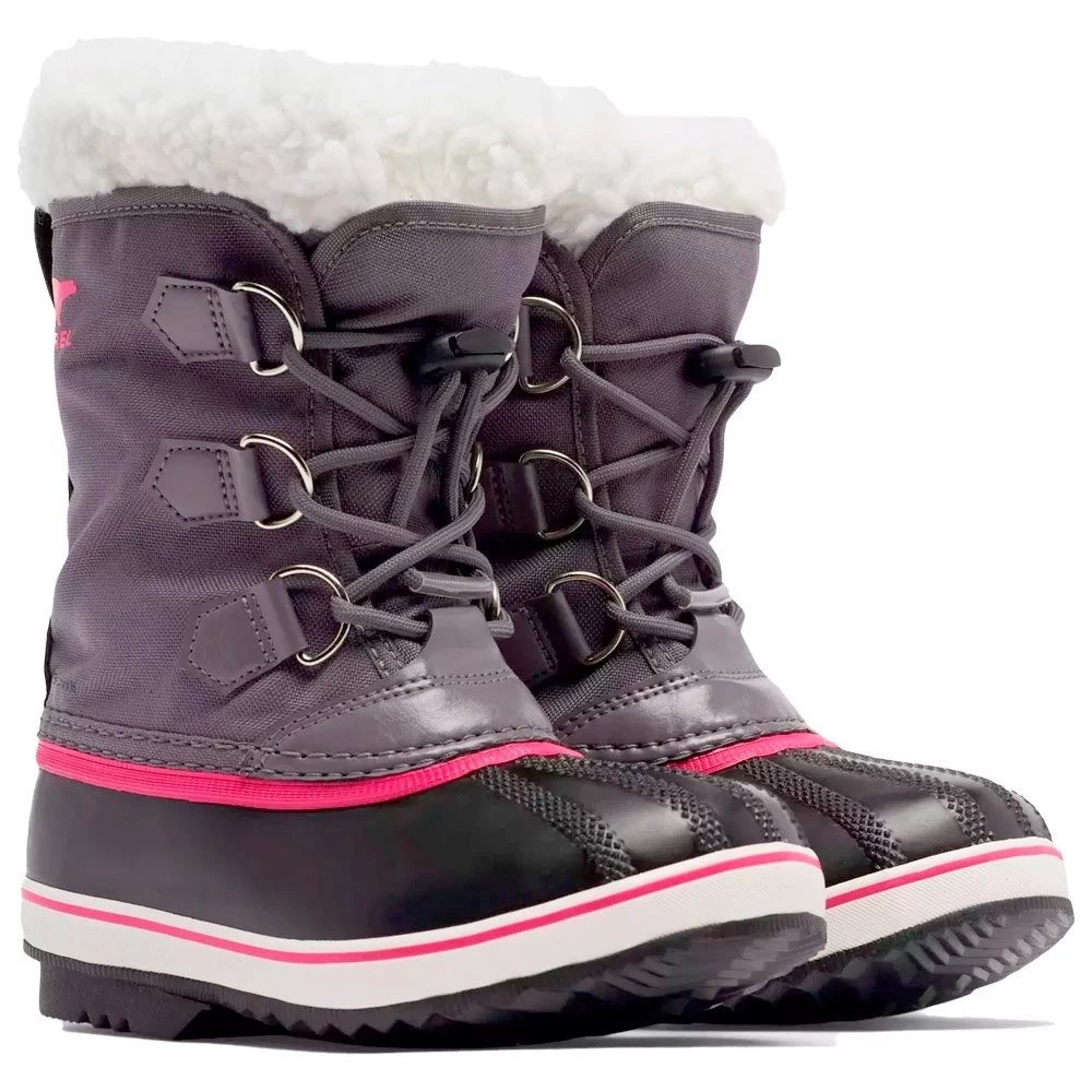 Les après-ski enfant Sorel Yoot Pac combinent confort et chaleur. Réputées pour leur robustesse, ces bottes hiver pour enfant bénéficient d’une tige imperméable en nylon, de coutures étanches et de coques imperméables en caoutchouc vulcanisé. Si elles protègent donc efficacement les pieds de vos enfants contre l’humidité, elles assurent aussi une très bonne protection contre le froid grâce à un chausson amovible et lavable en feutre recyclé de 9 mm, et à un revers pare-neige Sherpa Pile. Les semelles intercalaires intègrent un insert antigel en feutre contrecollé de 2.5 mm. Les semelles extérieures sont munies de crampons chevrons pour une bonne adhérence dans la neige et sur les surfaces mouillées.
