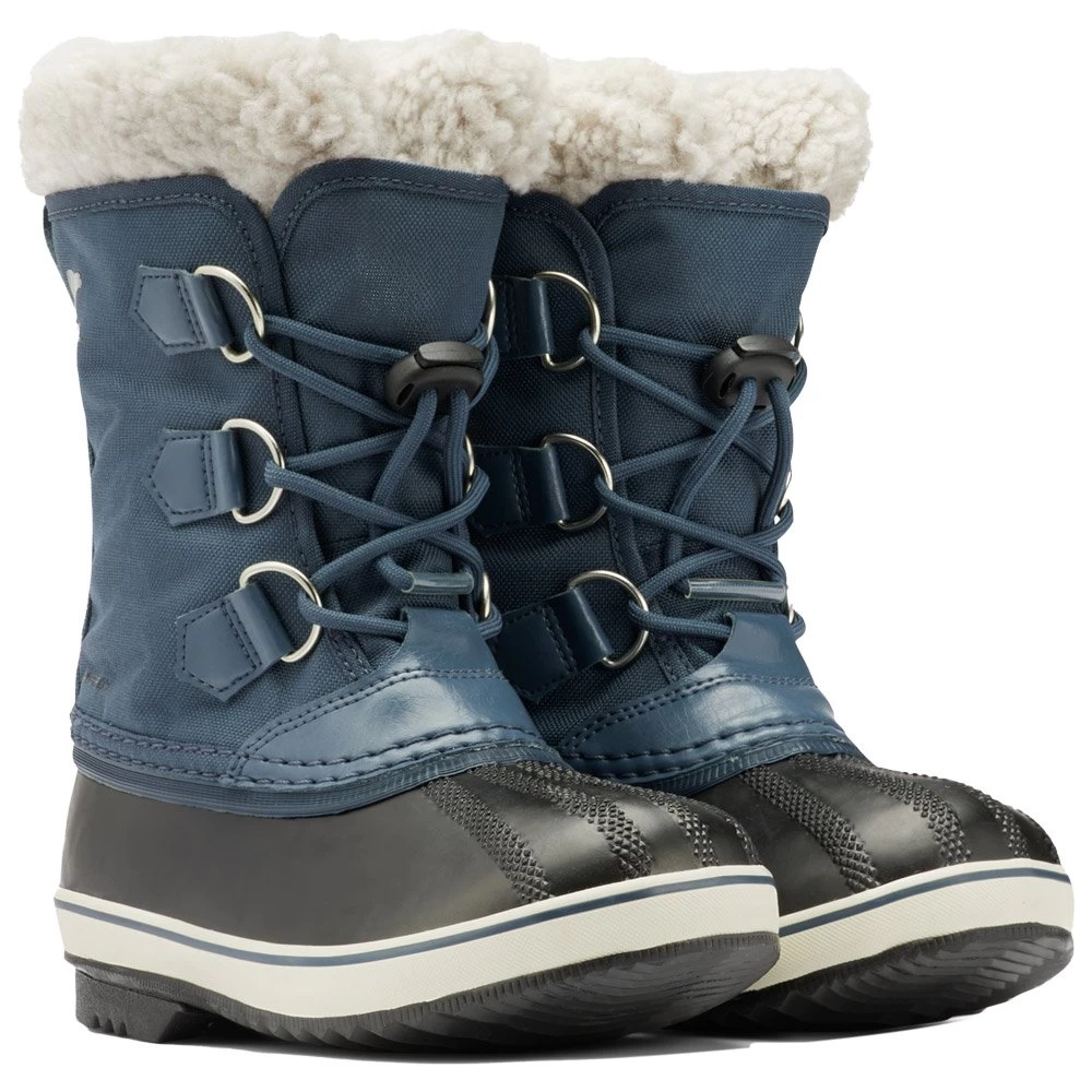 Les après-ski enfant Sorel Yoot Pac combinent confort et chaleur. Réputées pour leur robustesse, ces bottes hiver pour enfant bénéficient d’une tige imperméable en nylon, de coutures étanches et de coques imperméables en caoutchouc vulcanisé. Si elles protègent donc efficacement les pieds de vos enfants contre l’humidité, elles assurent aussi une très bonne protection contre le froid grâce à un chausson amovible et lavable en feutre recyclé de 9 mm, et à un revers pare-neige Sherpa Pile. Les semelles intercalaires intègrent un insert antigel en feutre contrecollé de 2.5 mm. Les semelles extérieures sont munies de crampons chevrons pour une bonne adhérence dans la neige et sur les surfaces mouillées.