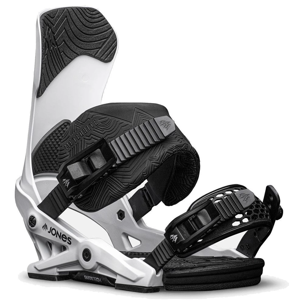 La Meteorite est la fixation de snowboard la plus accessible chez Jones, mais cela reste une fixation de qualité qui offre déjà un bon niveau de performance. On retrouve ainsi un spoiler qui monte haut et enveloppe bien le mollet pour vous apporter du contrôle, mais qui reste flexible en torsion à ses extrémités pour ne pas être trop exigeant physiquement. Les straps sont confortables et maintiennent efficacement le pied, le footbed offre un bon amorti et les gommes SkateTech situés aux quatre coins de la fixation apportent plus de réactivité dans le transfert d’énergie.