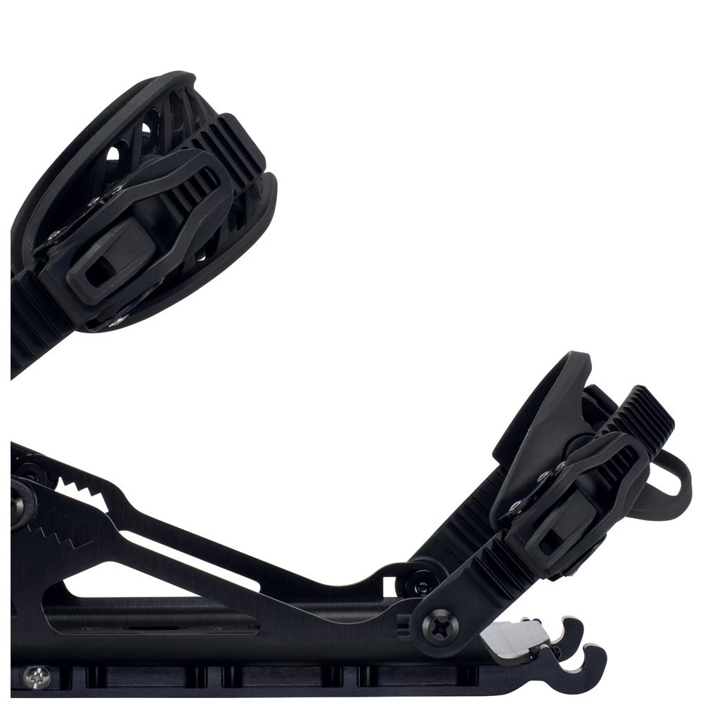 La Far Out offre un niveau de performance idéal pour faire du freeride à un bon niveau. Le châssis en aluminium est à la fois léger et robuste pour résister aux sollicitations importantes. On y retrouve une semelle inclinée de 3° vous offrant plus de contrôle et réduisant la fatigue. D’autre part, le spoiler fabriqué en nylon amène toute la réactivité et le contrôle nécessaires en appui backside sans être non plus trop rigide et inconfortable. Son inclinaison s’ajuste rapidement pour pouvoir passer en mode touring en un clin d’oeil et avoir une meilleure foulée. Enfin, les straps cou-de-pied et orteils sont conçus pour s’adapter à n’importe quelle boots en offrant confort et réactivité. Ainsi, vous avez une fixation assez confortable mais surtout bien réactive, qui vous permet de vous engager dans les descentes et vous offre également de l’efficacité à la montée.