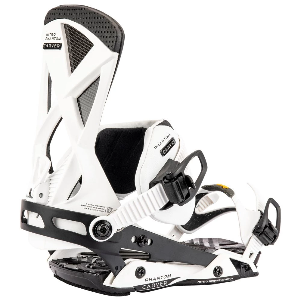 Version modifiée de la Phantom, la fixation de snowboard Nitro Phantom Carver part d’un modèle freestyle pour devenir une fixation beaucoup plus précise dans les courbes. Le spoiler est renforcé par du carbone et des modifications ont été apportées au strap cou-de-pied pour gagner en contrôle sur les appuis frontside. On perd donc en jouabilité pour gagner en performance, sans perdre en confort et en amorti qui sont haut de gamme. Spécifiquement développé pour les amateurs de carving, cette fixation fait partie de la section Carver Crue de chez Nitro.