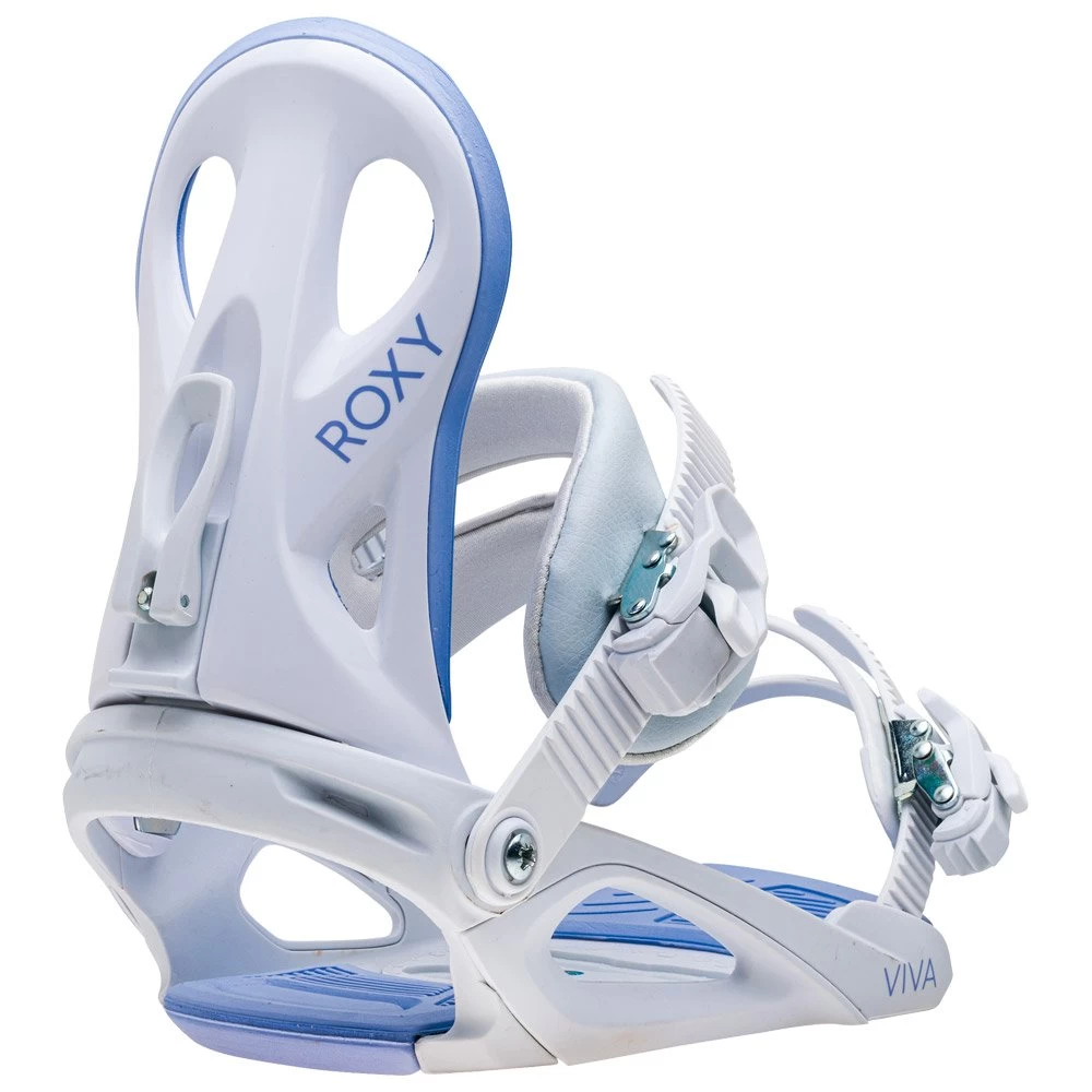 La Viva de chez Roxy, c’est une fixation de snowboard femme offrant du confort dans les descentes dans toute la station. Assez performante pour rider sur toutes les pistes, tout en restant facile Ă prendre en main. En effet, son spoiler est ajourĂ©, souple en torsion et dotĂ© d’une protection en EVA, pour un effet de confort et de tolĂ©rance dans les appuis backside. Les straps sont simples et gĂ©nĂ©reusement rembourrĂ©s. Ils maintiennent efficacement le pied sans crĂ©er trop de contrainte. Enfin, la semelle en EVA apporte de l’amorti lors des chocs et des vibrations. C’est une fixation polyvalente, avec laquelle on pourra faire du all mountain, monter en progression sur les pistes et les bords de pistes, et bien-sĂ»r faire du freestyle pour les plus tĂ©mĂ©raires des rideuses. Â