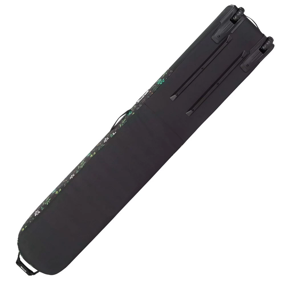 Voilà la Rolls Royce de la housse de snowboard ! La Dakine Low Roller Snowboard Bag est un modèle pensé pour le voyage, avec une construction semi-rigide équipée de roulettes, de barres de structure et d’une poignée rétractable. Elle est dotée d’un grand compartiment zippé pouvant contenir une planche de snow avec ses fixations ou 2 boards sans fixations. Il peut aussi contenir une paire de boots et des vêtements ou accessoires supplémentaires. Une poche externe zippée est également à votre disposition pour vos outils, votre paire de gants ou autres effets personnels. Avec son rembourrage intégral, cette housse Dakine protège efficacement votre matériel lors du stockage ou du transport.